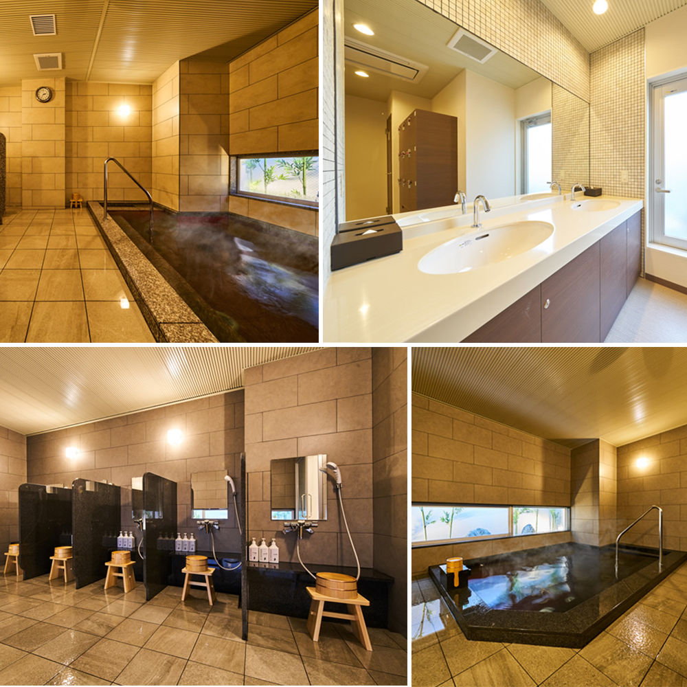 三原市本郷町の天然温泉「善入寺温泉」の温泉水を使用した大浴場(男女別)です。